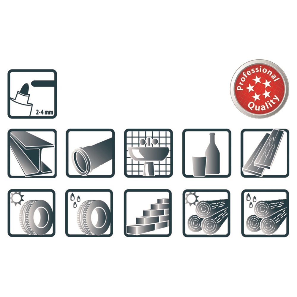 Voor permanente markering op vrijwel alle ondergronden.