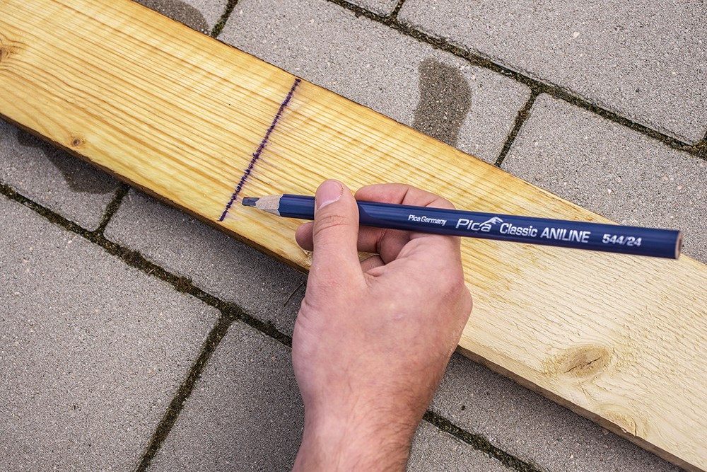 Klassiek markeerpotlood bestaand uit speciaal grafiet met een wateroplosbare, violette kleur voor een sterk contrast op nat hout. Makkelijk te slijpen hout gewonnen uit duurzaam beheerde bossen.