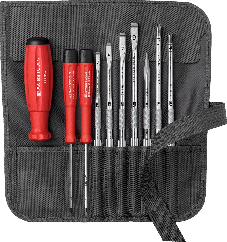 SwissGrip schroevendraaiers voor gleufkop-schroeven, korte en lange klingen. Bolrond hecht, zachte oppervlakte. Kleurcodering naar schroeftype, snelle herkenning. Evenwijdige vouw, optimale krachtoverdracht, geen uitwerpkracht (geen Cam-Out effect).