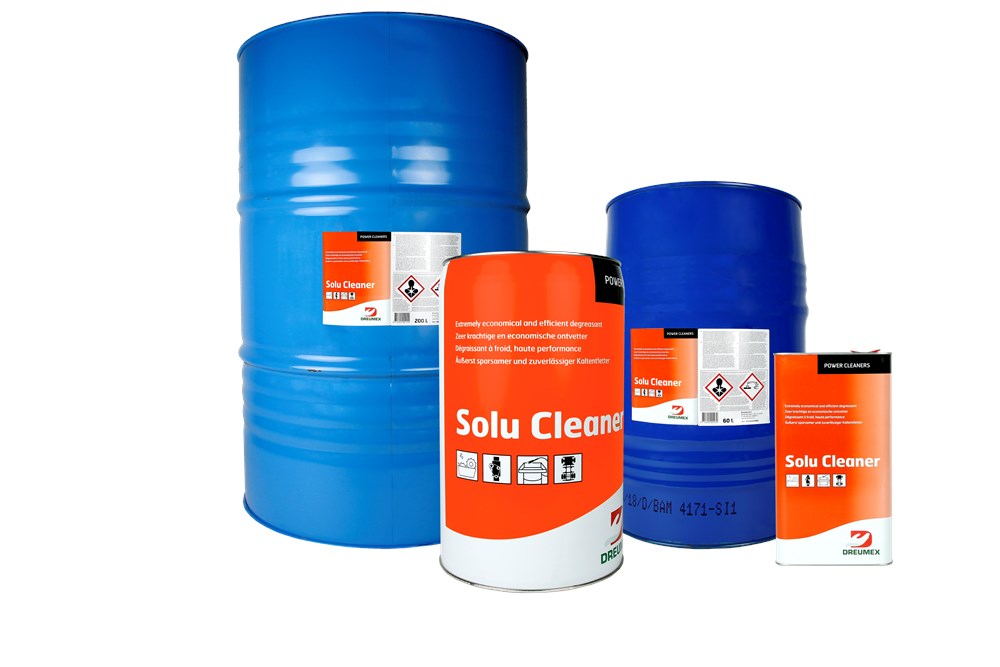 Dreumex Solu Cleaner is een koudontvetter geschikt voor het reinigen van industriële vetten en vuil. De emulgatoren in het product zorgen ervoor dat zwaar bevuilde motorblokken, machines en onderdelen worden gereinigd. Dreumex Solu Cleaner neemt vier tot vijf maal zijn eigen volume aan olie, vet en vuil op. Dreumex Solu Cleaner handmatig aanbrengen en na gebruik afspoelen met schoon water.