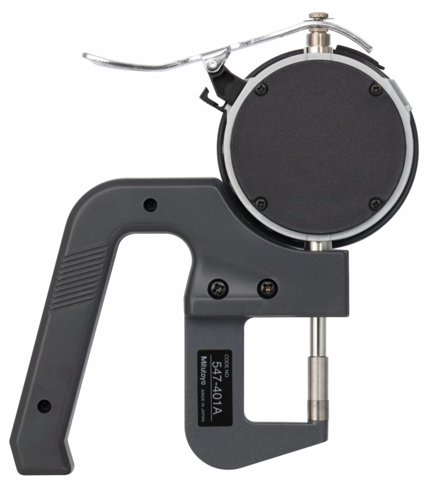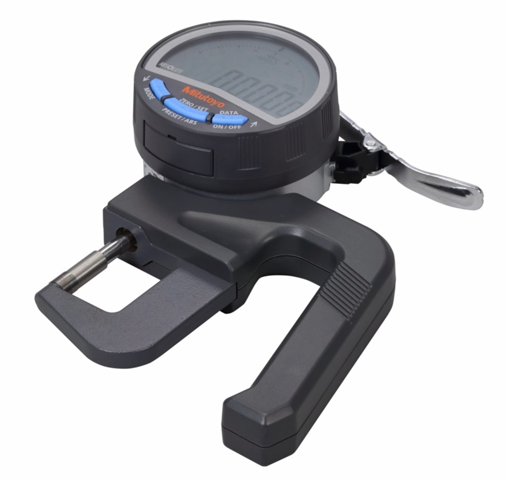 Deze ABSOLUTE diktemeter met een resolutie van 1µm voor het meten van film- en papierdiktes. uitgerust met vlakke meetsitften