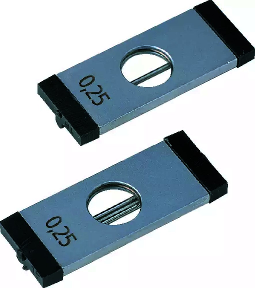 De meetdraden zijn gehard en gelept. Voor plaatsing op de spindel en het aambeeld van de buitenschroefmaat. De drie-draads meetmethode wordt toegepast om de flankendiameter te bepalen en wordt beschouwd als een van de meest nauwkeurige meetmethoden.