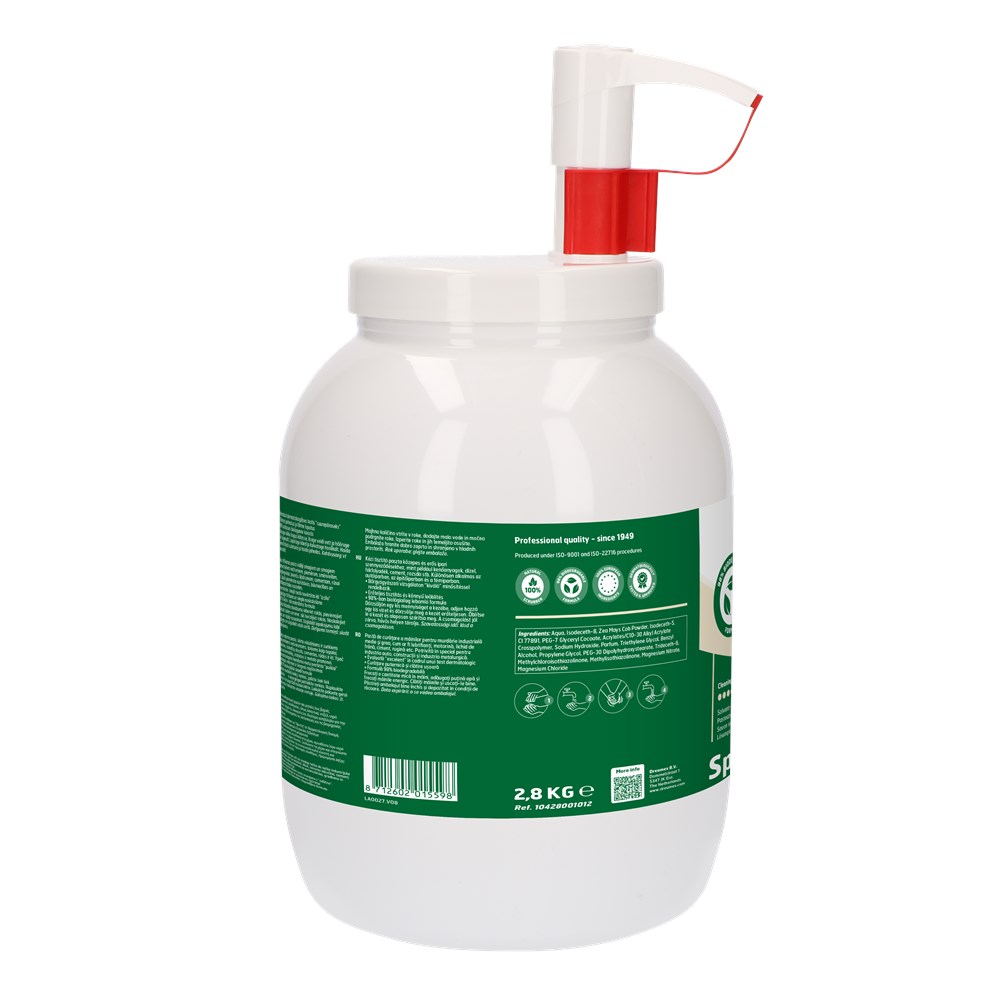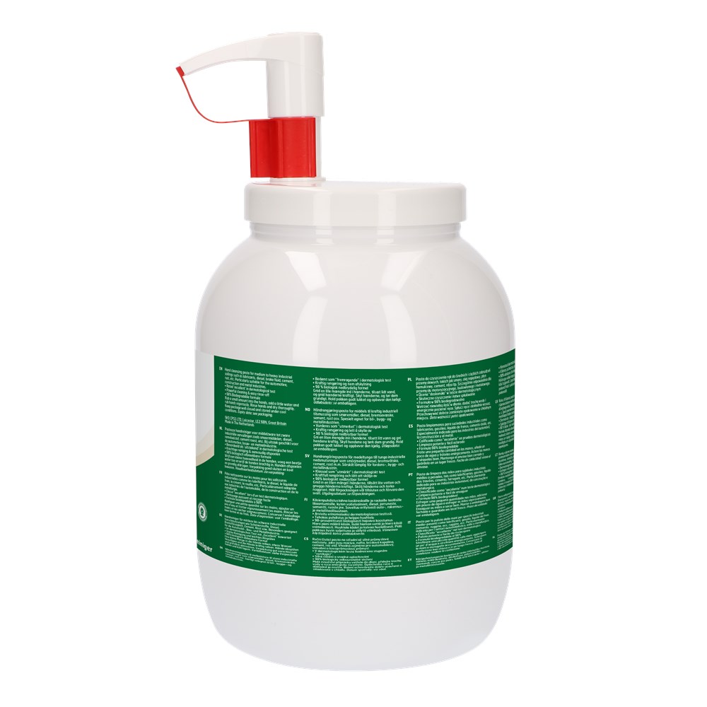 Oplosmiddelvrije handreinigingspasta voor middelzware tot zware vervuiling zoals remvloeistof, cement, olie, smeermiddelen, diesel, vet, hars, teer, roest, metaal(stof). Met name geschikt voor gebruik in de automotive-, bouw- en productie-industrie.