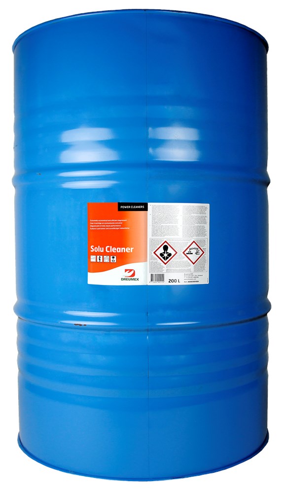 Dreumex Solu Cleaner is een koudontvetter geschikt voor het reinigen van industriële vetten en vuil. De emulgatoren in het product zorgen ervoor dat zwaar bevuilde motorblokken, machines en onderdelen worden gereinigd. Dreumex Solu Cleaner neemt vier tot vijf maal zijn eigen volume aan olie, vet en vuil op. Dreumex Solu Cleaner handmatig aanbrengen en na gebruik afspoelen met schoon water.