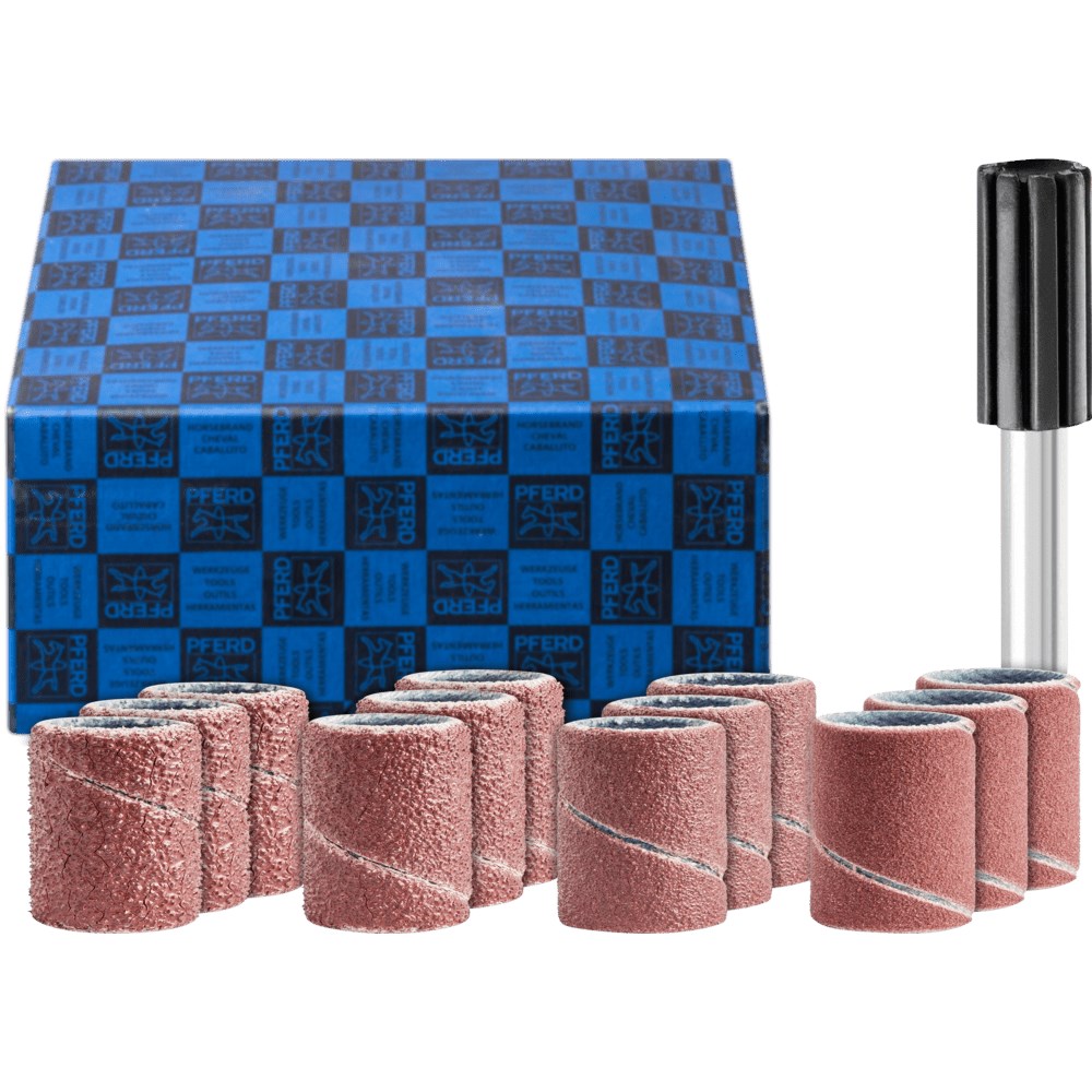 Voor de bewerking van verschillende werkstukgeometrieën en materialen biedt PFERD TOOLS een breed assortiment van gereedschappen uit flexibele slijpmiddelen aan. Zij bestaan uit een dragermateriaal, een basisbinding en een dekbinding voor het vastzetten van de slijpkorrels. Afhankelijk van de korrelgrofte kan met gereedschappen uit slijpmiddelen een hoge materiaalafname of een zeer fijne oppervlaktefinish worden gerealiseerd. De ter keuze staande dragermaterialen onderscheiden zich in hun eigenschappen zoals scheurvastheid, flexibiliteit en slijtage. Met de keuze van de geschikte onderlaag wordt het slijpgereedschap aan de eisen van de voorgenomen toepassing aangepast: Papier wordt aangetroffen in de houtverwerkende industrie en bij ambachtsbedrijven, bijvoorbeeld bij schrijnwerkers, schilders en spuiters, textiel wordt voornamelijk bij de metaalbewerking gebruikt, en het zeer slijtvaste vulkaanfiber wordt in verschillende dikten overwegend bij de productie van fiberschijven gebruikt. De set bevat een toepassingsgericht assortiment cilindrische slijphulzen voor universeel gebruik bij het grof- tot fijnslijpen, alsmede een passende slijphulshouder.