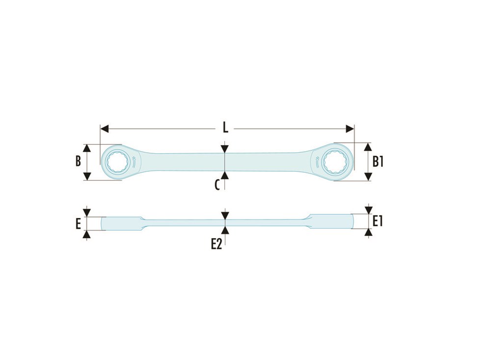 - Compact, d.m.v. het omkeren van de sleutel omkeerbaar ratelmechanisme.
