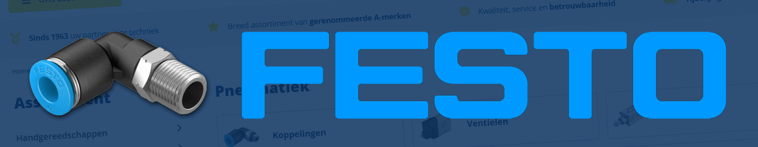 Bij Van Mierlo breiden we ons online aanbod verder uit: het Festo-assortiment is nu volledig zichtbaar en direct bestelbaar via onze webshop. Festo, wereldwijd bekend als specialist in pneumatiek en automatiseringstechniek, is al jaren een vast merk binnen ons assortiment. Nu zijn ook de meest verkochte Festo-producten – meer dan 3.700 artikelen – online beschikbaar. Denk aan Festo luchtcilinders, ventielen, slangen, koppelingen en onderhoudseenheden.